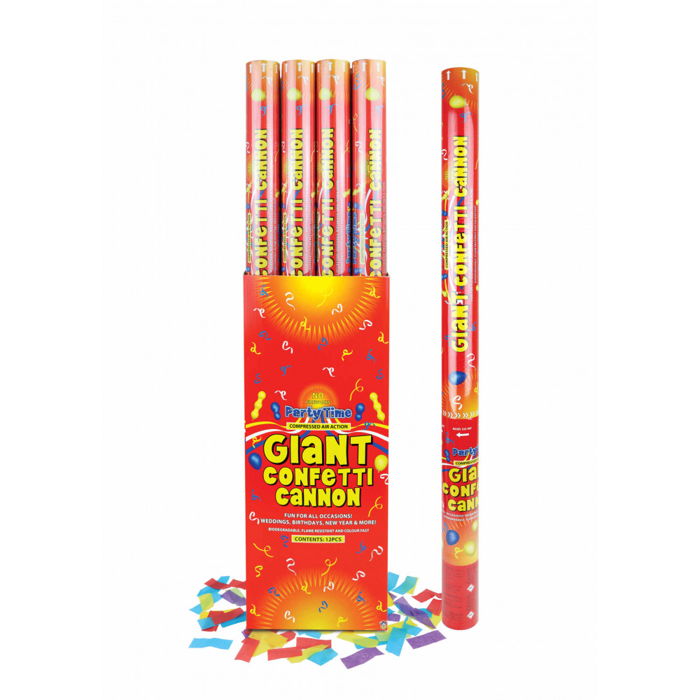 • These multicoloured paper confetti cannons use compressed air action and are fun for all occasions! Contains multicoloured tissue paper that is biodegradable, flame-resistant and colour fast. Size: 80cm.