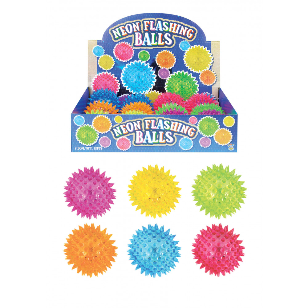 - These bright neon spiky balls light up when bounced or hit, and are great for outdoor ball games, party activities and prizes. 6 assorted colours available. Size: 7.5cm