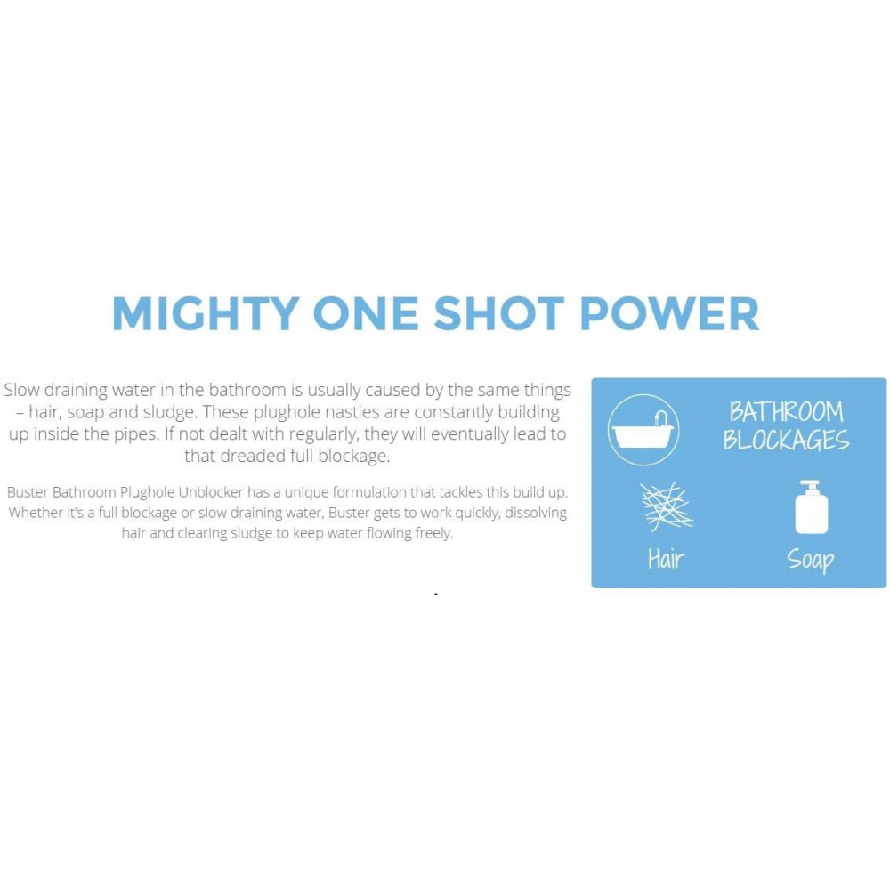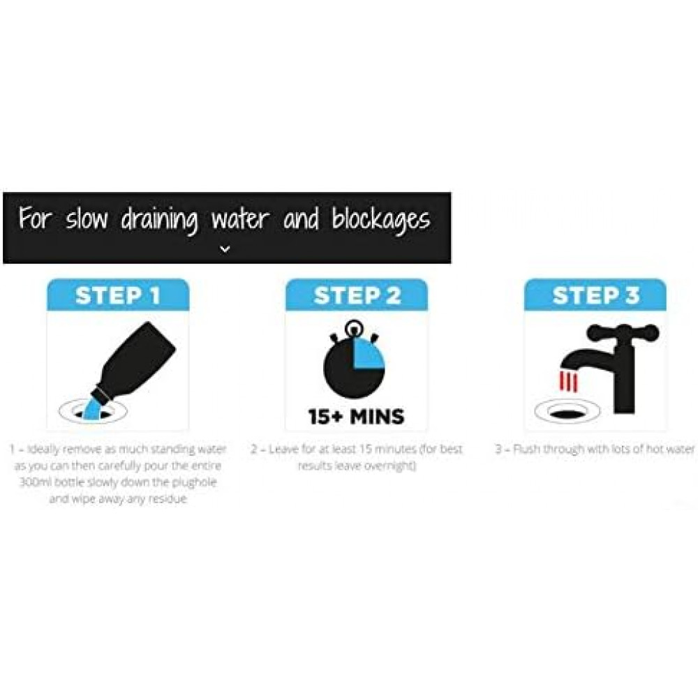 Product benefits: Dissolves hair and soap, preventing build-up for free-flowing pipes