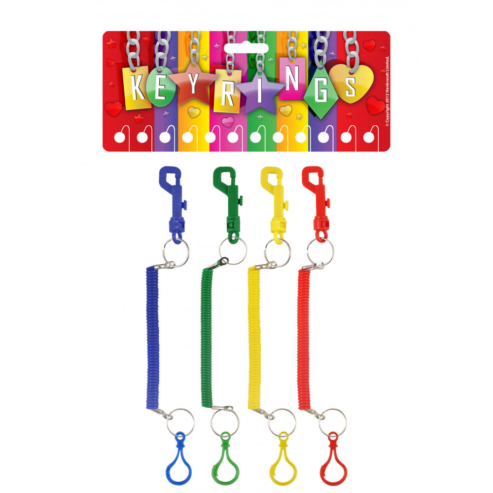 These stretchy, spiral multipurpose keychains with clips are functional and versatile, and come in 4 assorted colours. Size: 12cm